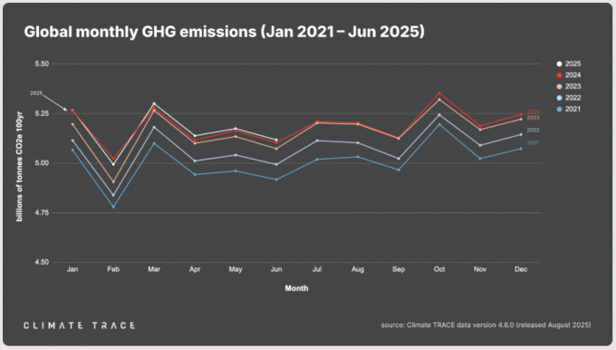 비영리단체 클라이밋 트레이스(Climate Trace)가 28일(현지시간) 발표한 올 상반기 온실가스 배출량 보고서에 따르면, 이 기간동안 전세계 온실가스 배출량은 309억9000만톤CO2e로, 지난해 같은기간에 비해 0.13% 증가했다.