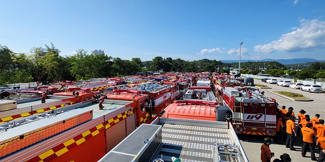 지난달 31일부터 서울과 경기, 인천, 경북 등 전국 각지에서 물을 가득 실은 소방차들이 강릉 홍제정수장으로 쉴새없이 물을 나르기 시작했다. 이렇게 소방차로 실어나른 물이 이날 하루 2500톤에 이른다. 1일부터는 물탱크 차량으로 교체해 하루 3000톤을 급수한다.