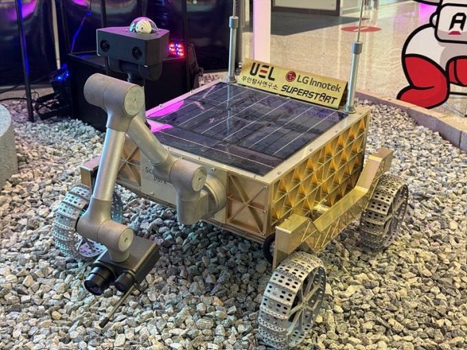 LG는 17일 서울 마곡 LG사이언스파크에서 개최한 스타트업 발굴·육성 행사 '슈퍼스타트 데이 2025'에서 달 탐사용 차량 '로버'를 비롯한 우주 산업 실증 사업 성과를 공개했다.