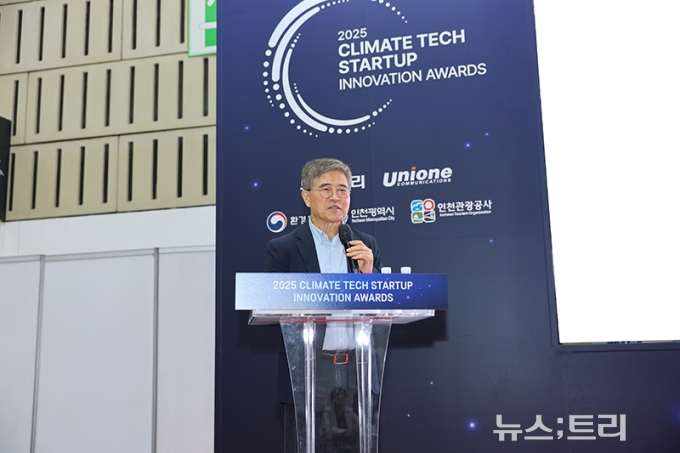 ▲김종대 SDG소장이 19일 개최된 '2025 기후테크 스타트업 혁신 어워즈'에서 기조강연을 하고있다. ©newstree