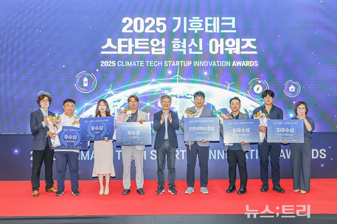혁신적인 기술과 아이디어를 가진 기후테크 스타트업을 발굴하는 '2025 기후테크 스타트업 혁신 어워즈' 수상기업으로 선정된 6개사에 대한 시상식이 19일 인천 송도컨벤시아에서 진행됐다.