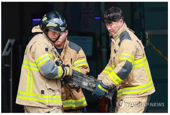 27일 소방 당국에 따르면 이날 384개 배터리 가운데 250여개를 밖으로 옮겼다. 이날 안에 반출 작업이 끝날 것으로 예상된다.