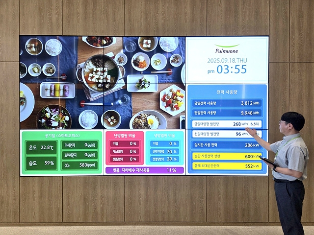 LG전자는 풀무원기술원 준공시 통합 냉난방공조(HVAC) 시스템을 공급했다. 고효율 열원장비인 냉방용 빙축열 시스템과 난방용 지열 히트펌프 등을 설치했고, BEMS로 각종 설비의 실시간 데이터를 수집하고 이를 기반으로 자동 제어 및 피크 부하를 관리한다. 또 BEMS는 실내외 온도와 습도, 이산화탄소(CO2), 조도, 미세먼지 등 9개 환경 요소를 센서로 감지해 공간별 목적에 맞는 환경을 유지하면서 에너지 사용을 최소화하도록 설계됐다.