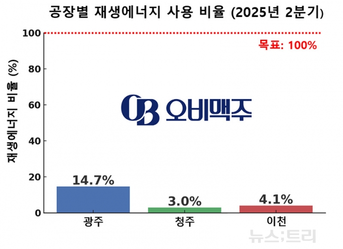 올해까지 제품생산에 필요한 전력을 100% 재생에너지로 충당하겠다고 호기롭게 발표했던 오비맥주가 '관세포탈' 등 기업리스크가 불거진 탓인지 올해가 석달밖에 남지 않았는데 재생에너지 전환율 RE100은 고작 한자리에 머물고 있다.