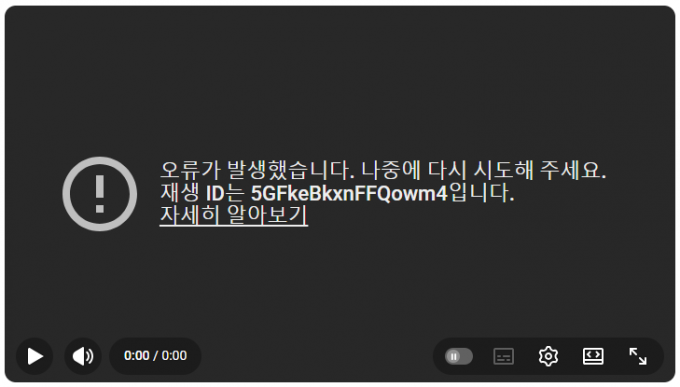 유튜브 영상이 재생되지 않는 오류가 발생하고 있다.