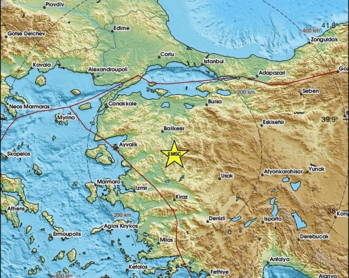 ▲튀르키예 서부 발르케시르 부근서 규모 6.1 지진이 일어난 위치 (사진=EMSC)