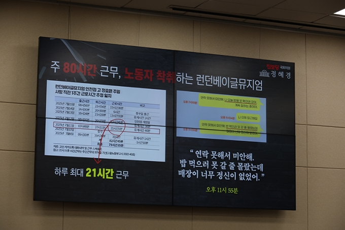 정 의원은 "근로계약기간이 매우 짧고 밥도 못먹을 만큼 바쁘게 일한다는 공통된 제보가 있었다"며 이번 사건이 런던베이글뮤지엄만의 문제가 아니고, 카페 하이웨스트, 레이어드 등 LBM이 운영하는 다른 브랜드에서도 동일한 구조가 작동하고 있다고 덧붙였다.