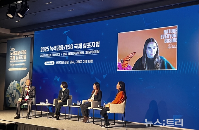 6일 서울 삼성동 웨스틴서울 파르나스에서 '녹색금융 시장의 확대와 다변화'를 주제로 열린 '2025 녹색금융/ESG 국제 심포지엄' 세션3에서는 자연기반 금융과 공시 그리고 기후대응을 중심으로 기업의 자연자본 공시확대 방향이 논의됐다. 참석한 전문가들은 데이터 접근, 공시체계 그리고 글로벌 협력 전략을 중심으로 자연자본을 재무리스크 관리의 핵심요소로 삼는 방안을 제시했다.