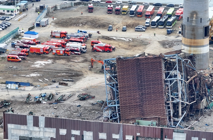 중앙사고수습본부는 오전 현장 브리핑에서 "붕괴한 보일러 타워 5호기 잔해 중 4호기와 가까운 구역에 매몰돼 있는 1명에 대해 구조를 우선 진행할 것"이라며 "아직 실종 상태인 나머지 1명을 찾기 위해 구조견, 영상 탐지기 등 가용한 모든 수단을 동원해 수색 범위를 넓혀갈 예정"이라고 밝혔다.