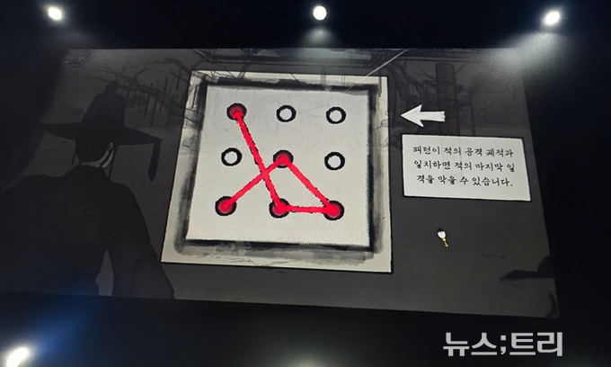 검을 그리다: 공방록은 휴대전화의 '잠금패턴'과 무협 속 비무를 콘셉트로 만든 게임이다. 주인공은 무협 속 무사로 여러 고수들에게 도전하는데, 무협지에 자주 등장하는 '검로'(검의 길)를 직접 그리며 공격과 방어, 반격 등을 펼친다. 화면에는 9개의 점이 나오며 이 중 빛나는 3개의 점을 한 붓 긋기로 이으면 공격에 성공하고, 적이 그리는 검로를 반대로 그려 방어 또는 반격할 수 있다. 언뜻 단순해 보이지만 난이도가 높아지면 적의 공격 속도가 빨라지면서 정말 무림 고수와 대련하는 검사가 된 것 같은 기분을 느낄 수 있다. 시연장에서는 액정 태블릿과 펜으로 플레이할 수 있었지만 마우스를 이용해서도 즐길 수 있다.