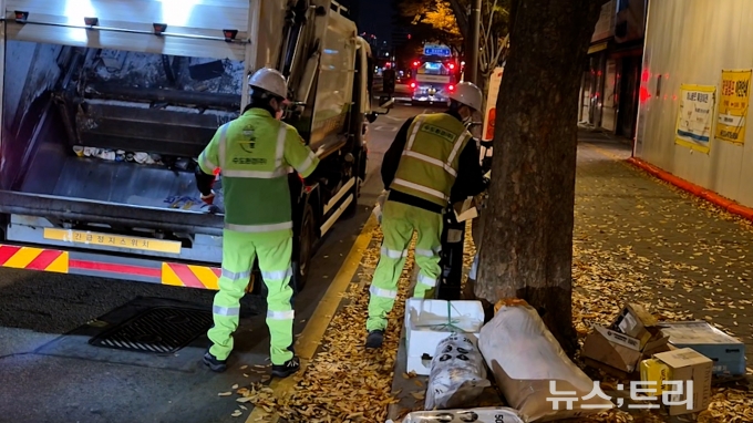 수거차량 작업자들은 "보통 오후 7시부터 수거작업을 시작하지만 거주자 생활환경에 맞춰 수거시간을 조정하기도 한다"면서 "관광지나 민원이 많은 지역은 더 늦은 시간에 수거를 시작하기도 한다"고 말했다. 수거를 시작하면 대략 6~7시간은 꼬박 매달려야 한다고.
