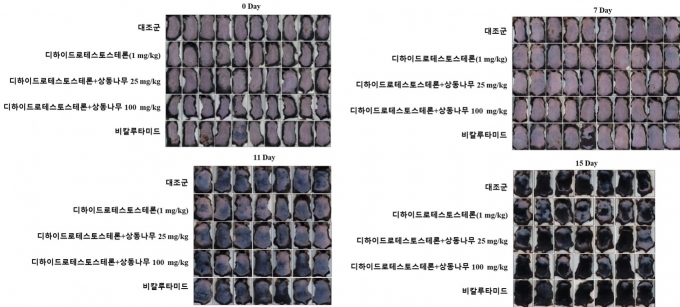 연구진은 동물모델을 활용해 발모 촉진과 탈모 억제 효과 규명 연구를 진행한 결과, 상동나무 추출물을 사용하면 모발 성장이 개선되고 굵기가 두꺼워지는 효과가 나타났다.
