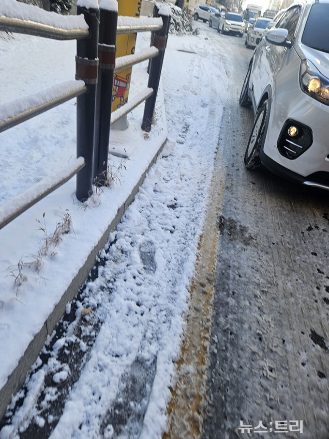 이에 비해 제때 제설작업이 이뤄지지 않은 경기도의 도로들은 전날 내린 눈이 그대로 얼어붙으면서 빙판길로 변했다. 이로 인해 출근길에 극심한 교통혼잡이 발생했다. 경기 의정부·구리·고양·남양주시 등 도로 곳곳에서 차들이 제 속도를 내지 못하면서 정체가 빚어졌으며, 지각하는 사람들이 속출했다.