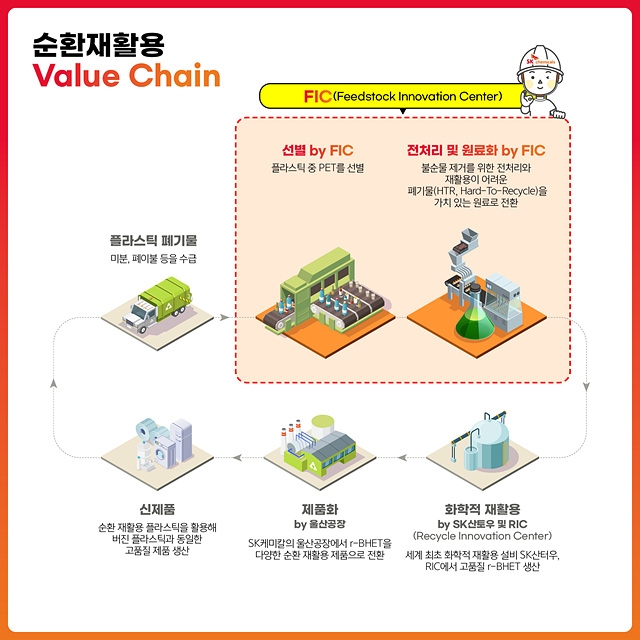 한편 SK케미칼은 지난 2023년 중국 산터우에 화학적 재활용 기반 생산법인을 설립해 r-BHET와 CR-PET를 상업 생산하는 글로벌 순환 재활용 거점을 마련한 바 있다. 국내에서는 울산공장에 RIC(Recycle Innovation Center)를 구축해 해중합 파일럿과 코폴리에스터 생산을 연계하는 연구–생산 연결고리를 만들었다. 동시에 현수막·폐섬유 등 섬유분야 해중합·재중합 기술을 축적해 순환 재활용 밸류체인을 고도화한데 이어, 이번에 FIC까지 건설하면서 재활용 사업의 수직계열화를 구축했다.