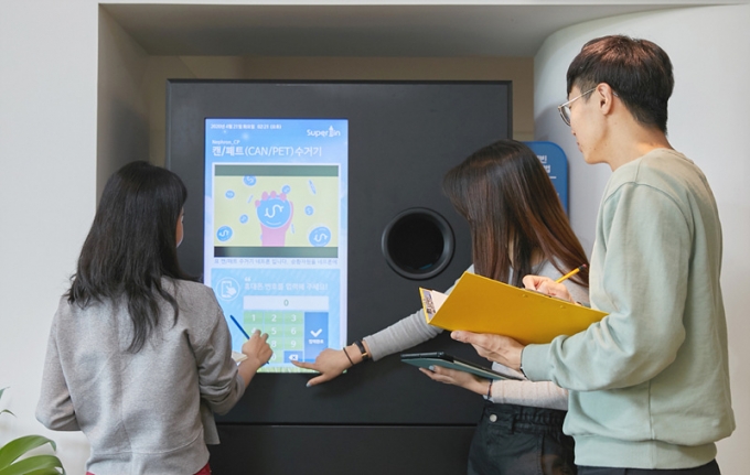 수퍼빈은 AI 무인회수기 '네프론'을 통해 투명 페트병만을 선별 수거하고 있다. 투입 시 보상을 제공하는 인센티브 구조로 분리배출 참여를 유도하며, AI 선별 기술을 통해 오염 가능성이 낮은 원물을 확보한다는 설명이다.