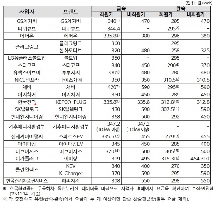 한국소비자원은 "자주 사용하는 충전기는 회원가로 이용하고, 그외에는 기후에너지환경부 회원카드(EV이음 카드)를 이용할 것"을 권장했다. EV이음 카드는 100여개에 이르는 민간사업자의 충전기를 하나의 카드로 통합해 이용할 수 있는 회원카드다. 요금 수준은 324.4원/kWh∼347.2원/kWh다.