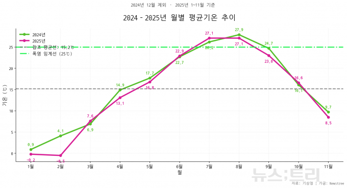 이런 가운데 한반도는 올 한해 어떤 기후패턴을 보였는지, 뉴스트리가 기상청 데이터를 바탕으로 정리해봤다.