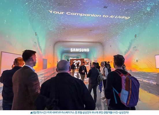 '엔터테인먼트 컴패니언' 존에서는 삼성이 세계 최초로 선보인 '130인치 마이크로 RGB TV'의 스탠드형과 벽걸이형이 가장 눈에 띄었다. 또 예술 작품을 연상케 하는 디자인의 와이파이 스피커 신제품 '뮤직 스튜디오 5·7'과 '투명 마이크로 LED'를 활용한 다양한 디스플레이로 관람객의 눈길을 끌었다. '홈 컴패니언' 존에서는 AI 기반으로 집안일을 도와주는 '비스포크 AI 에어드레서', '비스포크 AI 패밀리허브 냉장고', '인피니트 AI 와인 냉장고' 등 다양한 가전들에 이목이 집중됐다. 또 '케어 컴패니언' 존에서는 AI가 이용자의 상태를 분석해 선제적·예방적 건강 관리를 지원하는 '삼성 헬스' 중심의 다양한 설루션을 소개했다.