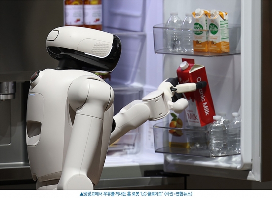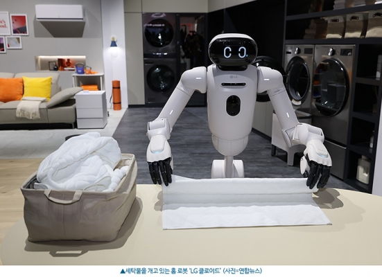 가장 많은 주목을 모은 건 가사도우미 홈 로봇 'LG 클로이드'였다. 143㎝ 높이에 얼굴 부분의 디스플레이에선 웃음을 짓거나 하트눈이 되는 등 고객과의 상호작용을 통한 '공감지능'을 강조한 모습이 눈에 띄었다. 일반 가정처럼 꾸며진 전시관에서 클로이드는 냉장고에서 음식을 꺼내며 상을 차리거나, 빵을 데우기 위해 오븐에 넣고 건조가 완료된 빨래를 개는 등 가사 전반을 해내는 모습을 보여 관람객들을 깜짝 놀래켰다.