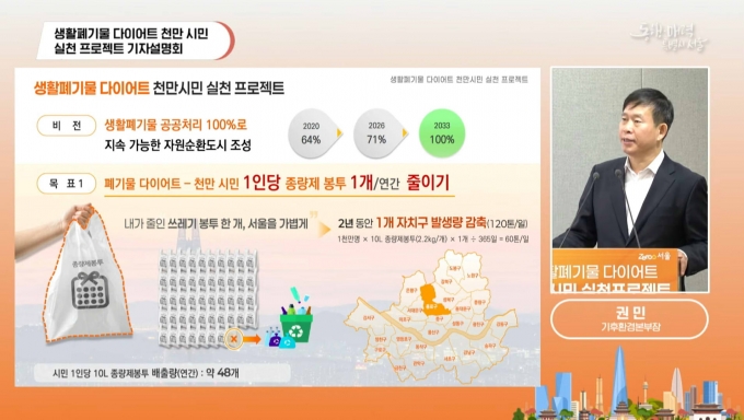 서울시는 프로젝트가 성공하면 2년간 약 4만4000톤의 생활폐기물을 줄일 수 있을 것으로 내다보고 있다. 권민 서울시 기후환경본부장은 "자원순환의 출발점인 생활폐기물 감량은 공공처리 역량 확대와 맞물려 추진돼야 할 핵심 과제"라며 "다가오는 직매립 금지 시행에 대응하고 2050년 탄소중립도시의 토대를 닦겠다"고 말했다.