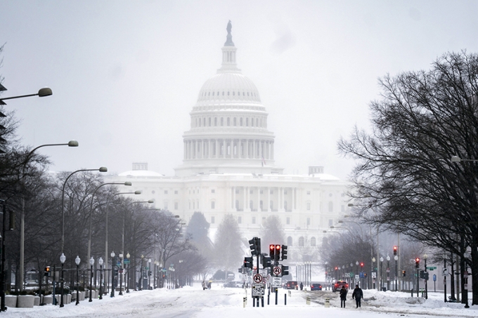 26일(현지시간) AP통신에 따르면 이날 아칸소주부터 뉴잉글랜드주까지 미국 북동부·중부·남부 지역 2100㎞에 걸쳐 30㎝가 넘는 눈이 내렸다. 이미 뉴욕시에는 수년 만에 20∼38㎝의 눈이 쌓였다. 기온도 미국 본토 48개 주 전체 평균 -12.3℃로 예보됐다. 2014년 1월 이후 최저다.