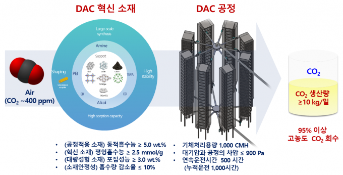 한편 이번 연구는 과학기술정보통신부와 한국연구재단이 추진하는 DACU 원천기술개발사업의 지원으로 추진됐으며, 에너지연을 중심으로 KAIST, 고려대학교, GS건설이 참여해 소재–공정–시스템–실증 전 주기에 걸친 협력을 수행했다.