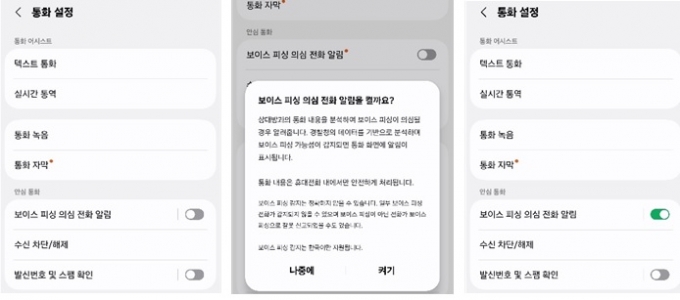 해당 기능은 삼성 '전화', SK텔레콤 '에이닷 전화', KT '후후', LG유플러스 '익시오' 앱에서 설정할 수 있다. 통화내용 분석은 모두 개인정보 유출 우려를 최소화하기 위해 외부 서버가 아닌 스마트폰 기기 자체의 인공지능(On-Device AI) 기반으로 이뤄진다.