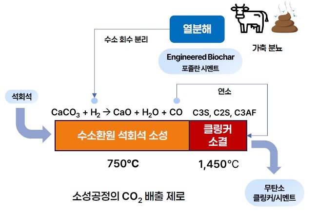 이에 김 대표는 시멘트를 제조하는 과정에서 탄소를 제거하는 기술을 개발하기 시작했다. 수 년의 연구 끝에 김 대표는 수소를 이용해 이산화탄소를 제거하는 기술을 개발하는데 성공했다. 소성로에 수소를 투입하면 이산화탄소가 일산화탄소와 물로 치환되고, 일산화탄소는 별도로 포집되도록 했다. 김 대표는 "우리 기술을 활용하면 시멘트 생산중 발생하는 이산화탄소를 70%까지 제거할 수 있다"며 "포집한 일산화탄소는 소성로의 연료로 다시 활용할 수 있다"고 설명했다. 이렇게 하면 시멘트 생산과정에서 발생하는 이산화탄소를 사실상 제로로 만들 수 있을 뿐만 아니라 수입에 의존하는 유연탄 비용도 아낄 수 있다.