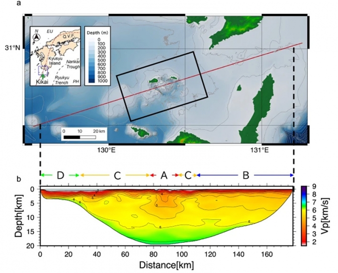연구진은 칼데라를 가로지르는 해역에서 지진파 굴절 탐사를 실시해 해저 아래 구조를 분석했다. 해저에 관측 장비를 설치하고 선박에서 음파를 쏘아 보낸 뒤, 그 파동 변화를 분석해 지하구조를 3차원으로 복원하는 방식이다.